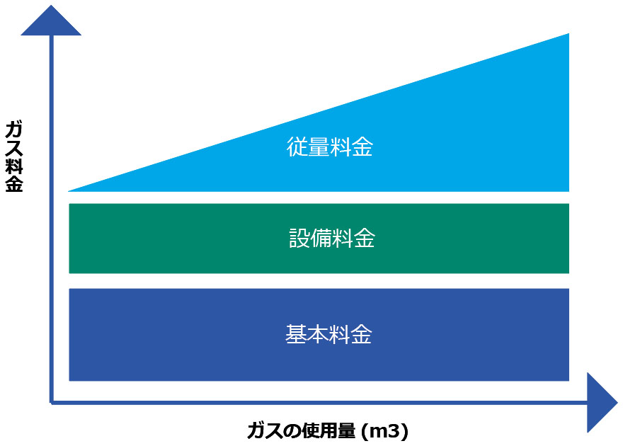 LPガス料金は「基本料金」+「従量料金」+「設備料金」の「三部料金制」となっております。