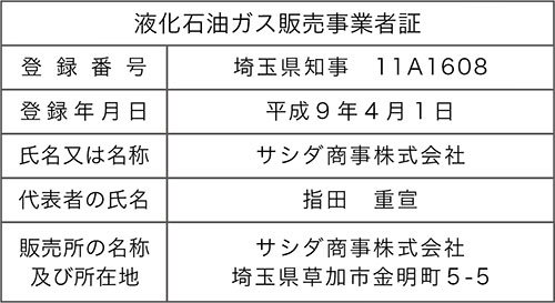 | 所得許可 | 液化石油ガス販売事業者 特定液化石油ガス設備工事事業者 ガス機器設置スペシャリストの店 |
